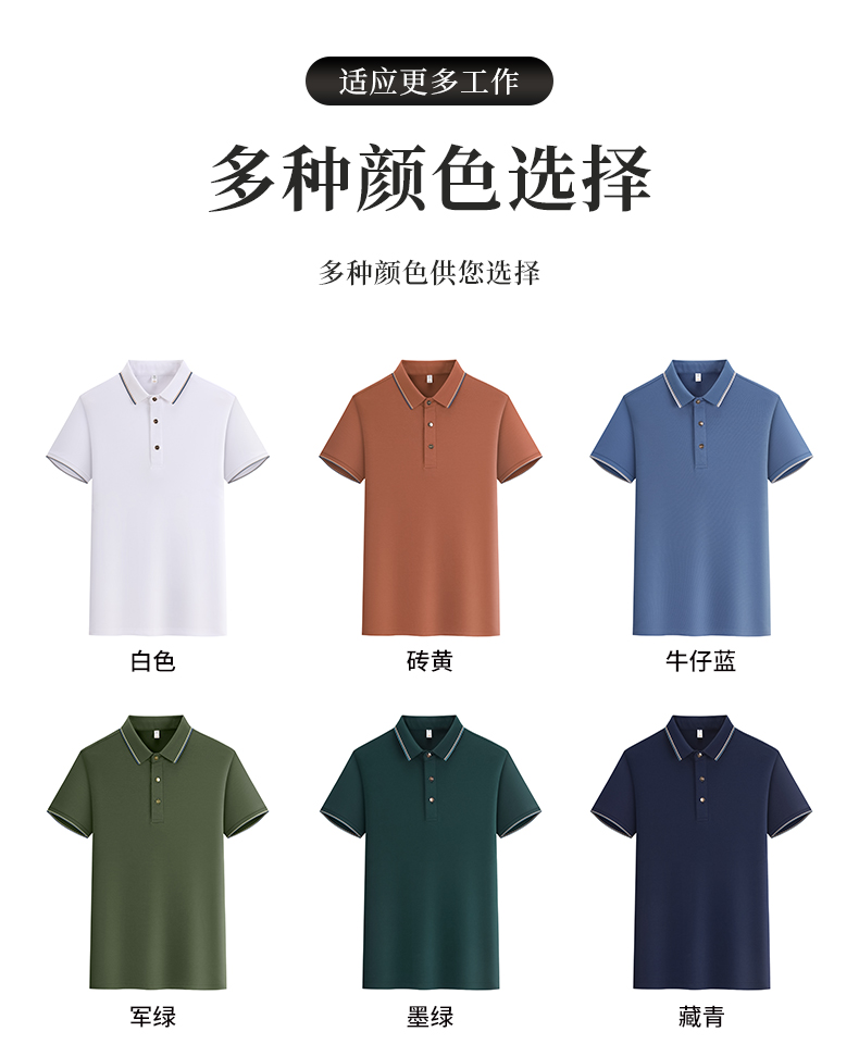 polo衫定制比亞迪POLO衫定制logo220g超爽纖維帶條D扣翻領(lǐng)短袖