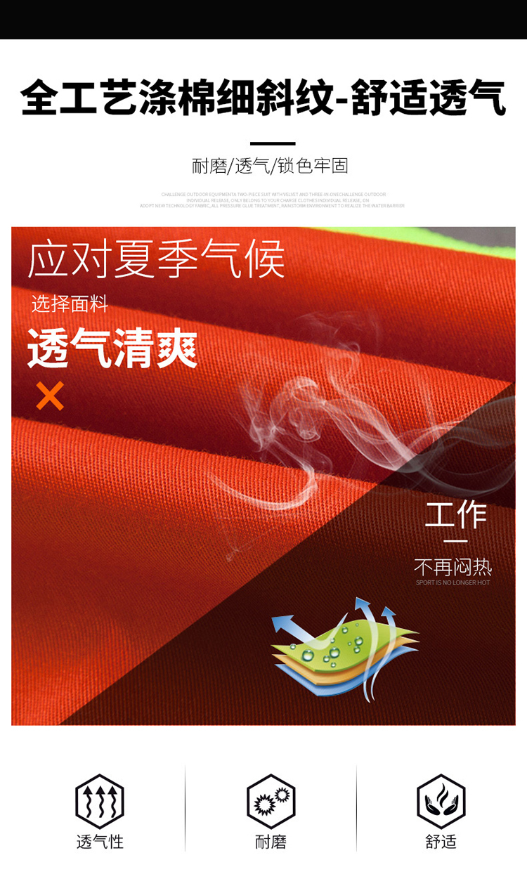 全工藝滌棉細(xì)斜紋春夏環(huán)衛(wèi)綠反光條短袖套裝工作服